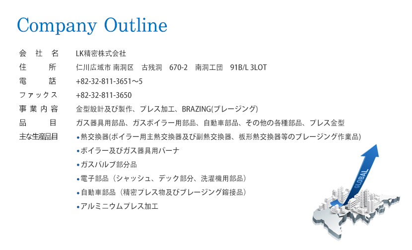 LK 精密(株) / 社長 : Lee Bong Ryeol / TEL : +82-32-811-3651~5 / FAX : +82-32-811-3650